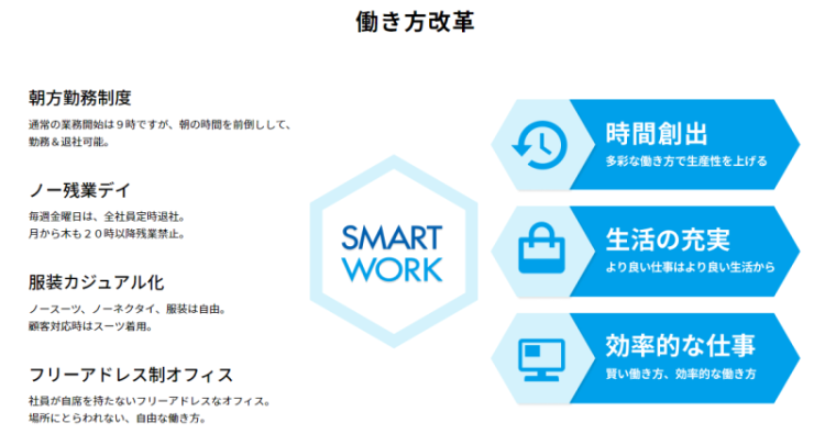 また、ノー残業デイ、夜8時以降残業禁止など、長時間労働を防ぐ制度もしっかり整っています。